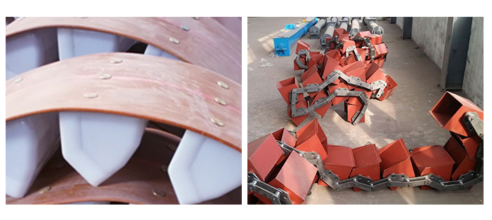 4.使用壽命長(zhǎng),提升機(jī)的喂料采取流入式,無(wú)需用斗挖料,材料之間很少發(fā)生擠壓和碰撞現(xiàn)象。本機(jī)在設(shè)計(jì)時(shí)保證物料在喂料、卸料時(shí)少有撒落,減少了機(jī)械磨損。